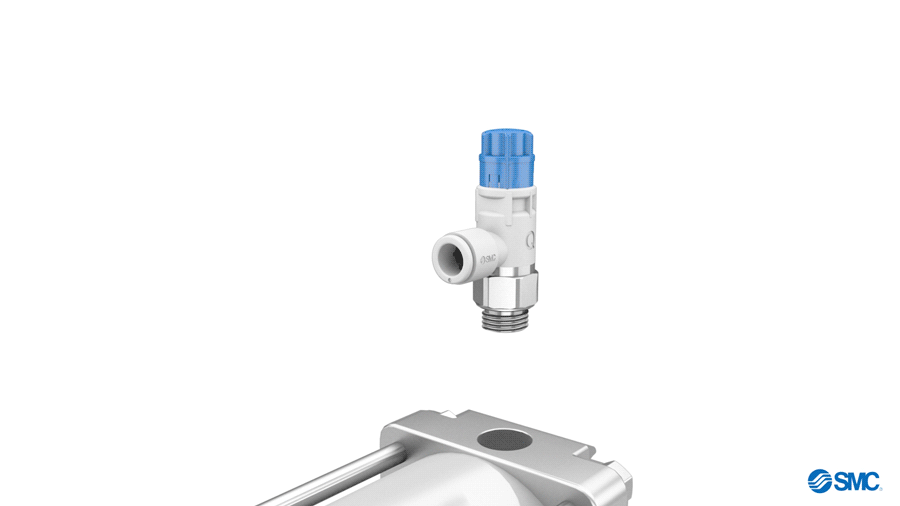 对于夹紧、顶升、推送等仅气缸单侧有输出力要求的场景,建议气缸采用SMC节能型调速阀+快速排气阀,可在非出力侧将工作压力降至0.2MPa,并实现速度与节能的完美平衡,降低气缸运行能耗。