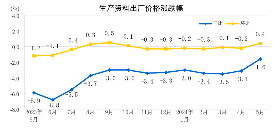 2024年5月份工业生产者出厂价格同比降幅明显收窄 环比上涨