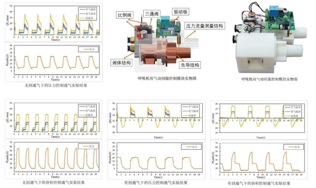 北京理工大学针对现有呼吸机控制元件冗余、成本高、开发周期长等问题,设计了呼吸机用气动伺服控制模块。模块可以在实现空气、氧气比例混合的同时保证压力、流量的精确控制。模块采用紧凑的结构及合适的器件,具备体积小、重量轻、集成度高、模块化的特点。呼气回路采用快拆先导腔式结构,降低成本的同时便于拆下消毒、清洗。开发了基于并行自抗扰控制(ADRC)的双闭环控制器,有效减少控制元件的使用。 呼吸机用气动伺服控制模块实现了有创、无创机械通气功能,集成了压力控制通气与容积控制通气模式,可以作为呼吸机设备的核心控制模块直接使用,降低了厂商的开发难度。模块的压力和流量控制范围分别达到0~10?kPa和0~100?L/min,响应时间、超调量和精度分别在200?ms、2%和±2.5%以内,满足了呼吸机小型集成化、低压大流量、低成本高精度的应用需求。