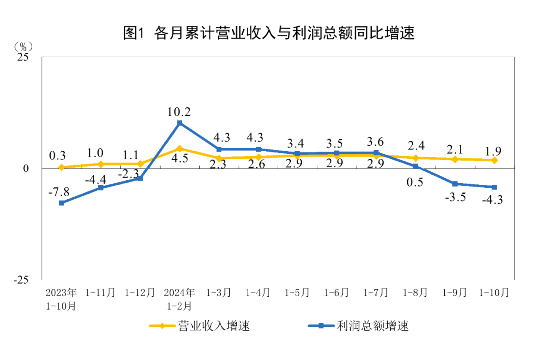 2024年1—10月份全国规模以上工业企业利润下降4.3%